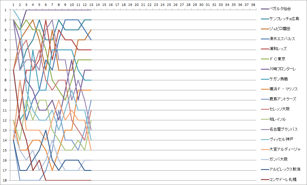 鹿島が大勝し13位に。札幌は未だ2勝目遠く。